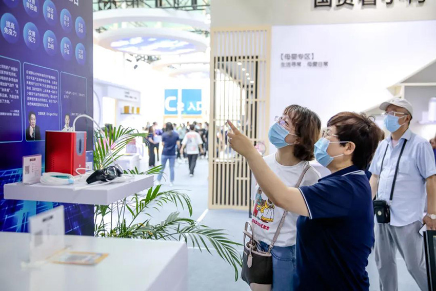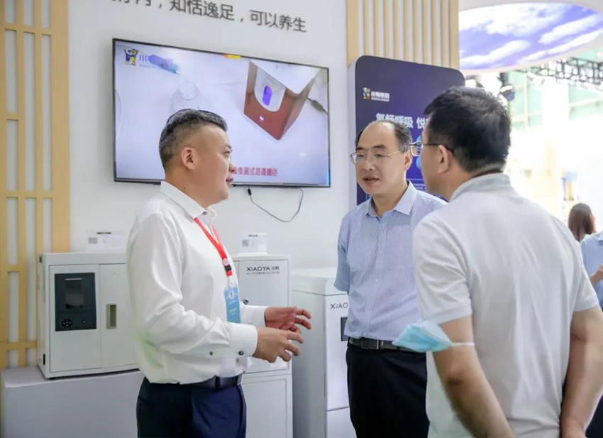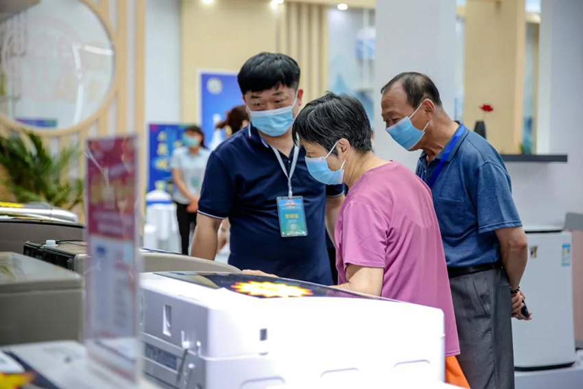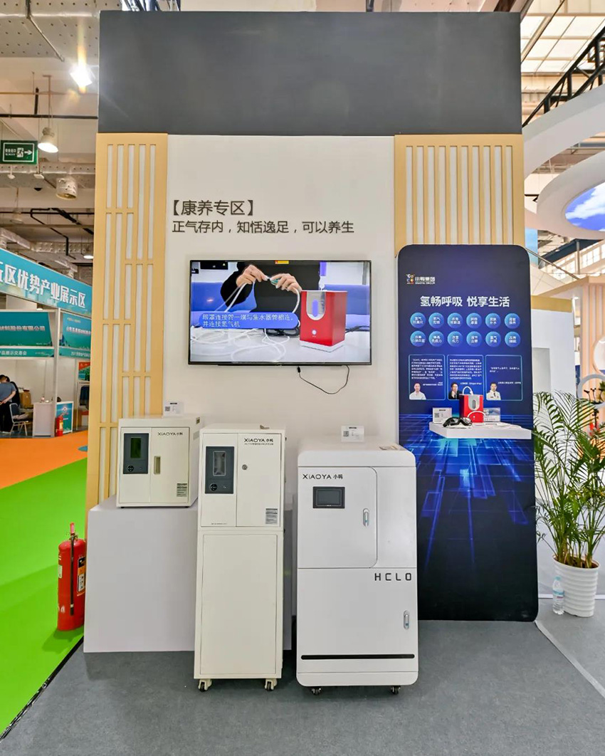 氫暢呼吸,悅享生活。康養(yǎng)展區(qū)前,顧客紛紛駐足,講解員耐心講解氫氣機(jī)具有改善心血管功能、提升胃腸道功能、提升免疫力等功能。