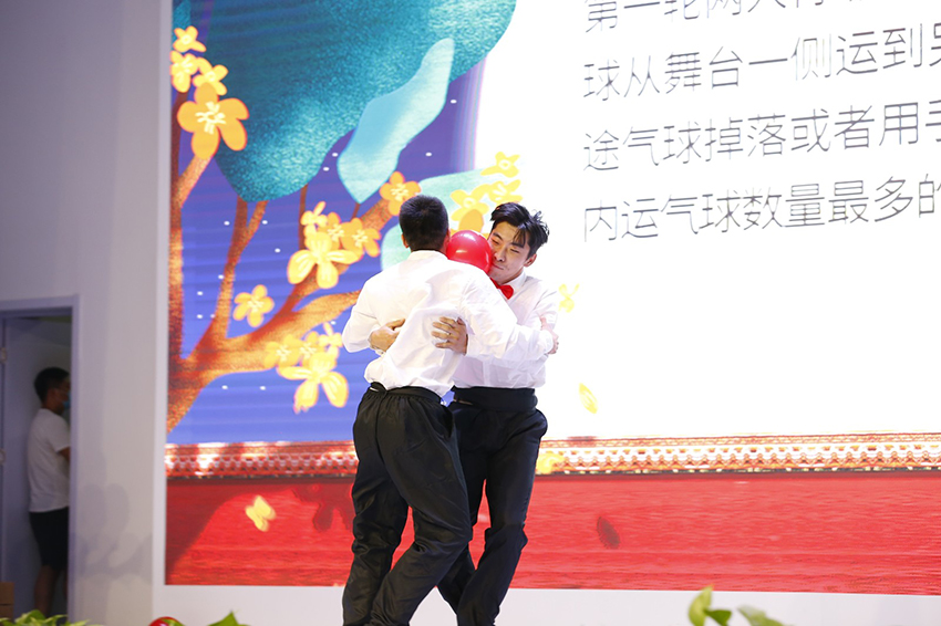 《愛的抱抱》游戲吸引了眾多職工的參與,職工們爭先恐后奔向舞臺,進行一場場體力與腦力的大比拼。