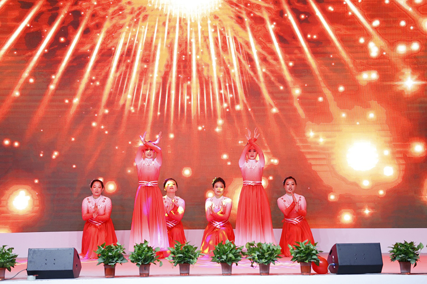 職工們的勁歌熱舞將晚會現場的氣氛頂到極點,他們熱情洋溢、激情似火,猶如歡脫的音符在臺上跳動,現場觀眾的熱情被他們點燃,揮舞著閃光燈為他們應援。