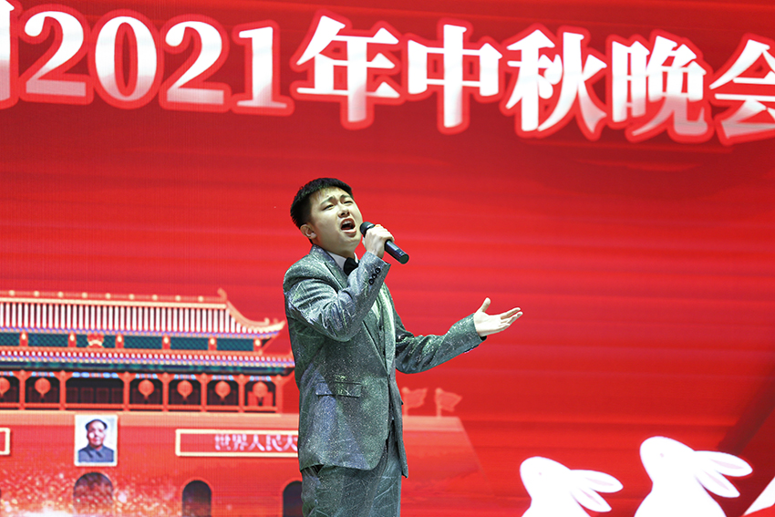 一曲悠揚的《我和我的祖國》拉開了中秋晚會的序幕,絢麗的裙擺宛如綻放的嬌艷牡丹,優美的歌聲行云流水一般,嘹亮與寬厚的交錯,喚起在場職工對祖國深深的眷戀。
